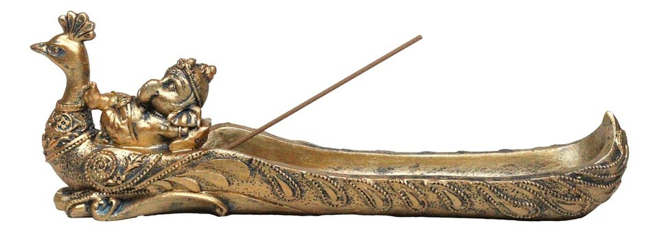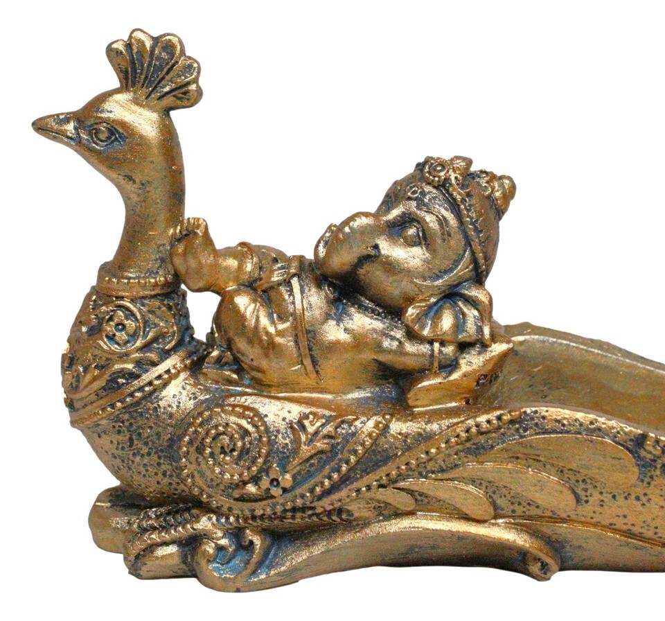 - Hindu God Ganapati Baby Ganesha Sleeping On Peacock Incense Holder Figurine
