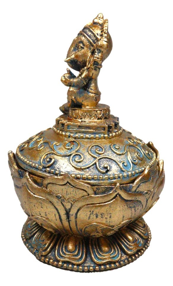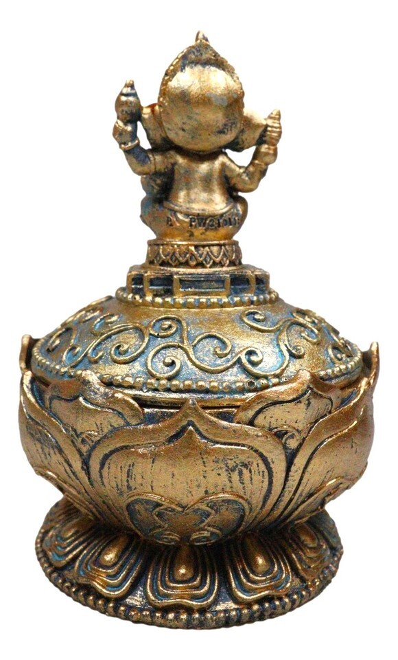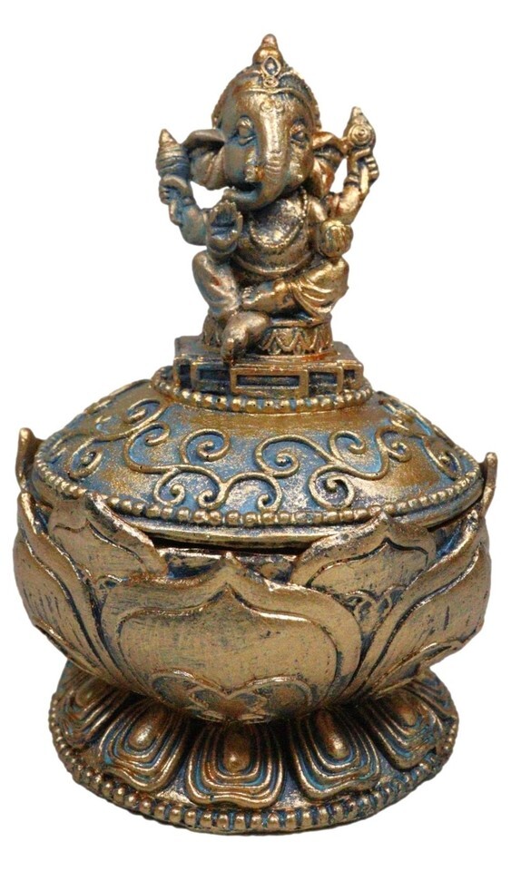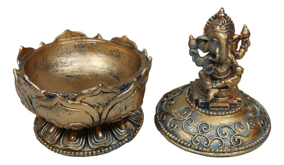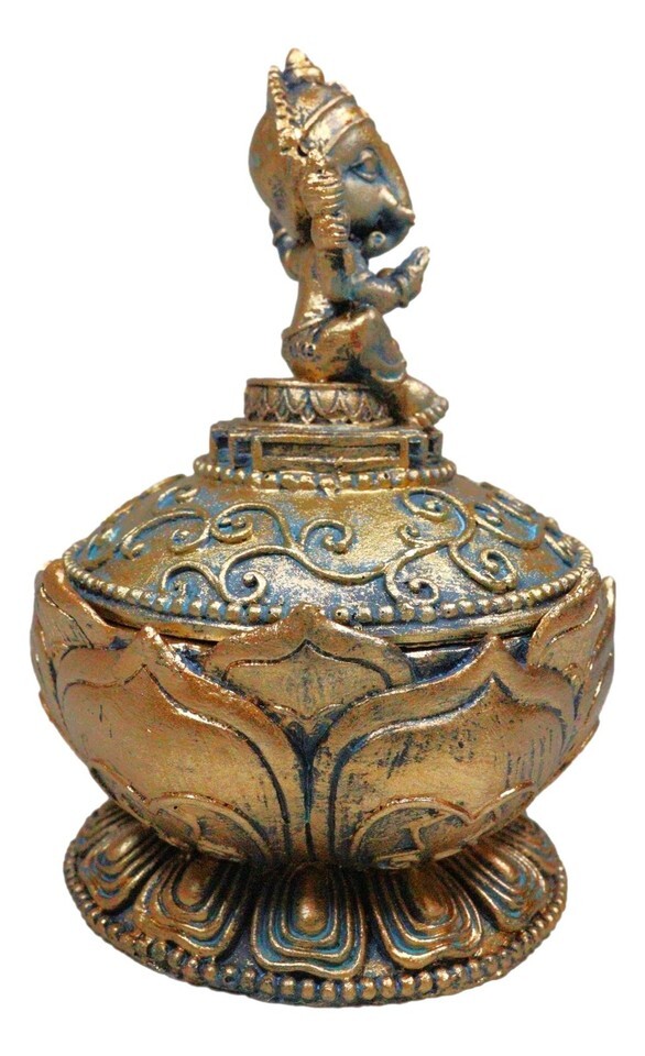 ? This Ganesha Trinket Box is made of high quality polyresin, individually hand crafted and painted. Because each piece is handcrafted, color tone may vary slightly from pictures.