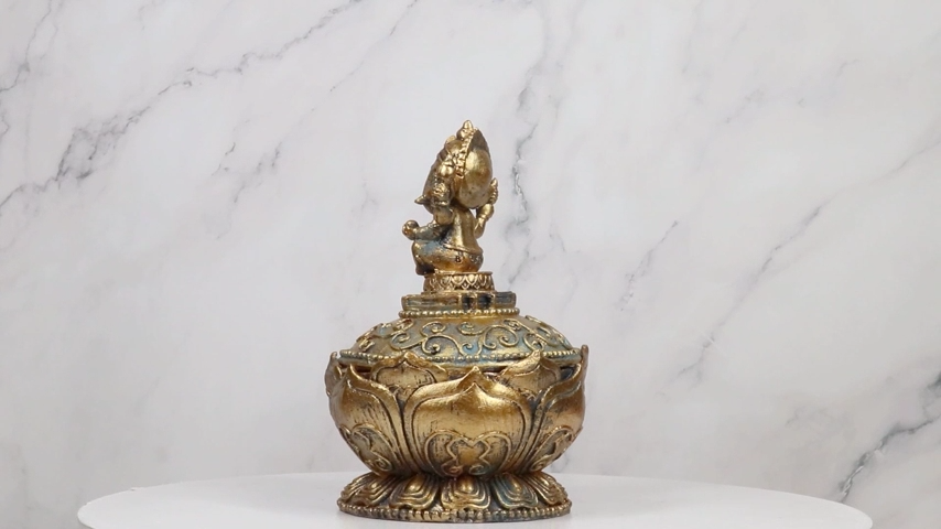 ? Immerse yourself in divine symbolism with our Ganapati Ganesha in Meditation Trinket Decorative Box, featuring an intricately crafted figure in a meditative pose atop a mandala flower base. This exquisitely detailed box captures the essence of spiritual serenity and serves as a meaningful addition to your collection. Perfect for storing your most cherished trinkets or as a decorative accent, this box seamlessly blends spiritual reverence with aesthetic beauty.