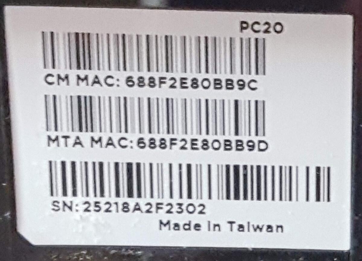 Docsis 3.1 eMTA PC20 Cable Modem Model E31N2V1