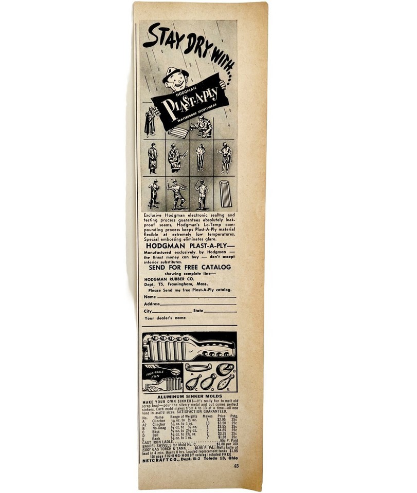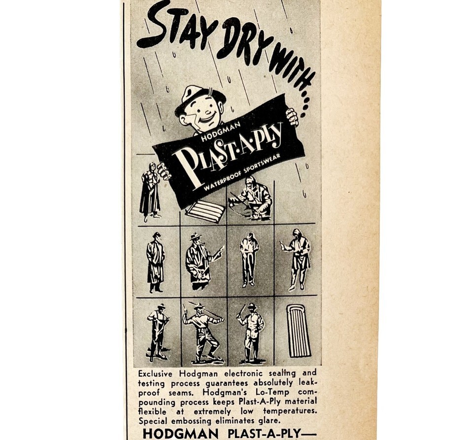 Hodgman Plast A Ply Waterproof Sportswear 1953 Advertisement Outdoor DWDD20