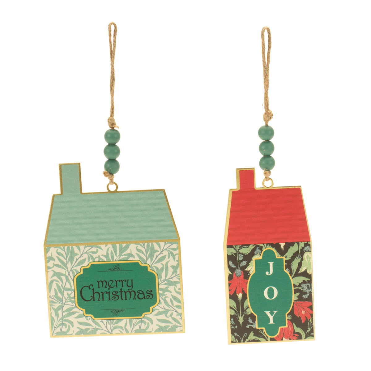 Add a charming rustic touch to your holiday d cor with this Set of 4 Holiday House Ornaments. Crafted from iron and wood beads, each 6-inch ornament features festive house designs that bring warmth and nostalgia to your Christmas tree or seasonal displays. Lightweight and durable, these handcrafted decorations are perfect for adding a cozy, handcrafted feel to your holiday celebrations.