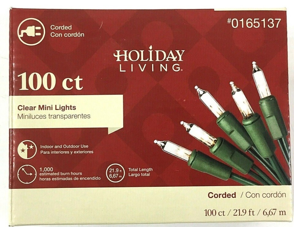 Holiday Living 100 Count Clear Mini Lights, Green Cord, 21.9' Long, Indoor/Outdoor Use