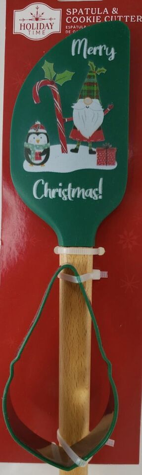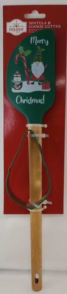 Holiday Time Spatula Cookie Cutter makes baking Holiday cookies so much fun! A great gift for your favorite baker, our set includes a festive spatula and cookie cutter. The silicone spatula is heat-resistant up to 400 degrees F, so you can use it for stovetop cooking, too. Set includes spatula and cookie cutter. Spatula has a BPA-free silicone head that won't chip, crack or absorb food odors and flavors. Spatula has solid beech wood handle that's shaped like an artist's paintbrush for a comfortable grip. Cookie cutter is made of durable stainless steel coated in silicone for a soft touch.