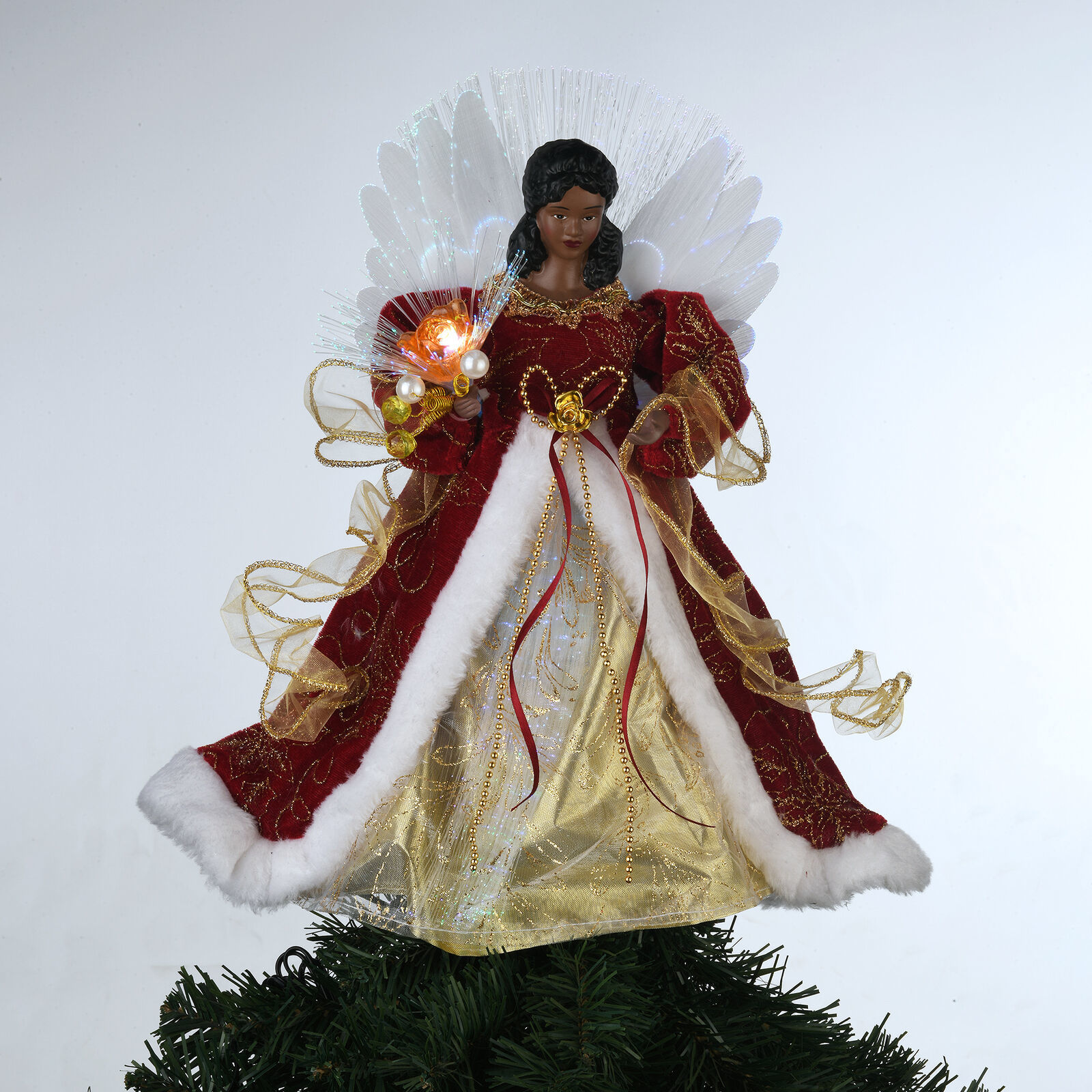 Holiday Time LED Fiber Optic Angel Christmas Tree Topper, Red 12" Holiday Time 12" LED Fiber Optic Angel Christmas Tree Topper, Red Fiber optic lights with LED light source UL-Approved AC Adaptor Ideal for indoor use only Can also be used as a table topper