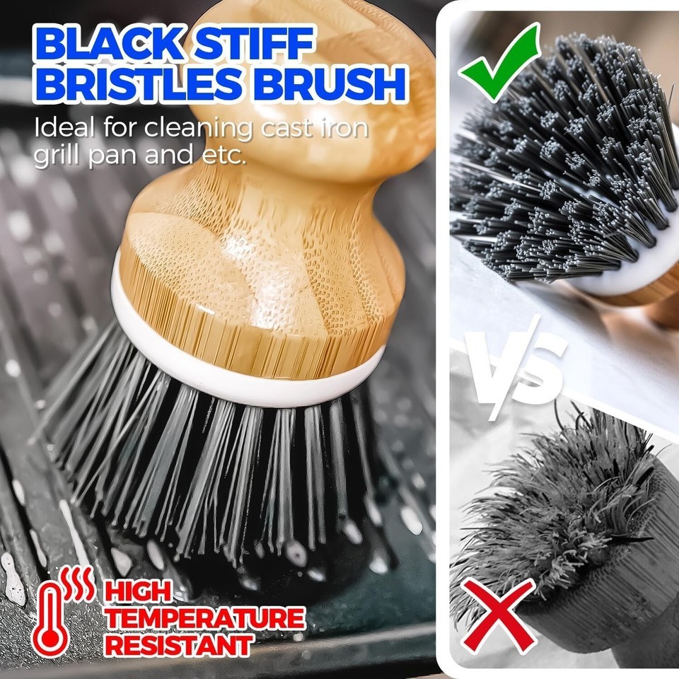 Black Stiff Brislte: Hard brush made of heat-resisting material is designed to clean your cast iron cookware, keeping seasoned skillets, pots and pans sparkling clean without damage.