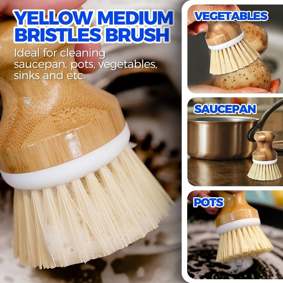 Yellow Medium Brislte: Harder brush is more suitable for cleaning stubborn stains, while effectively protecting the surface of kitchen items.