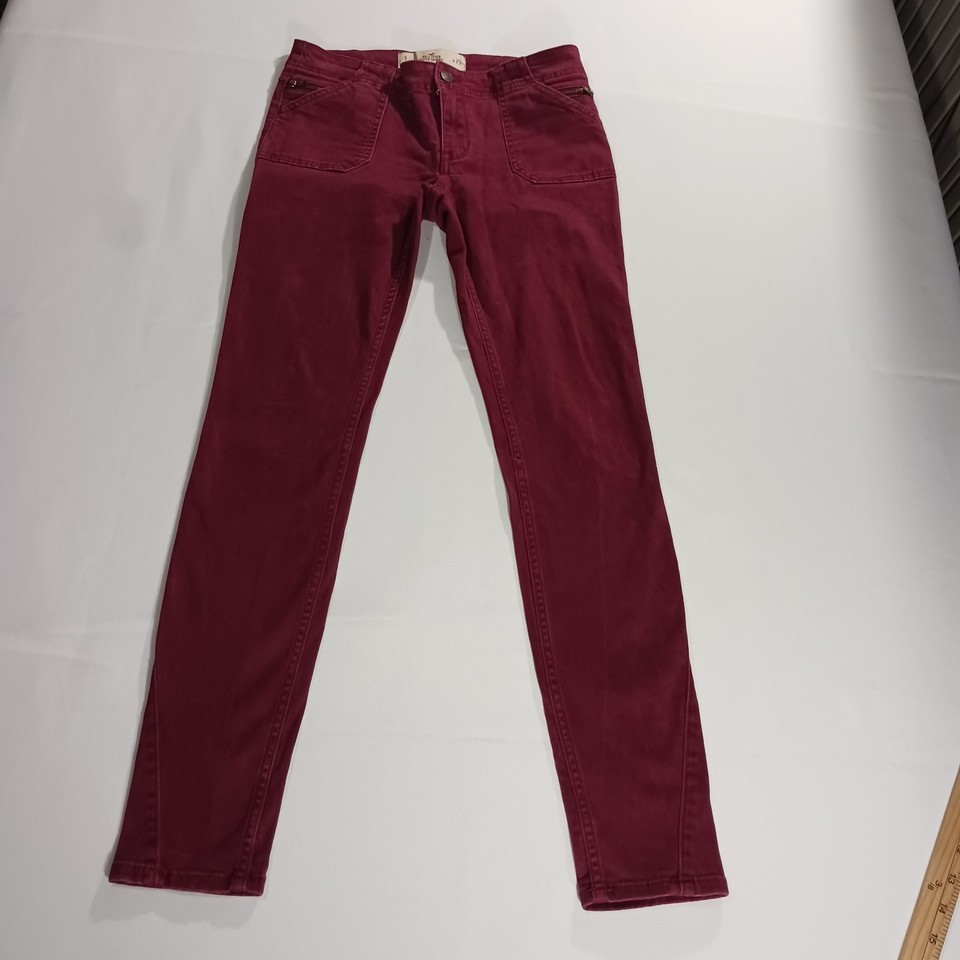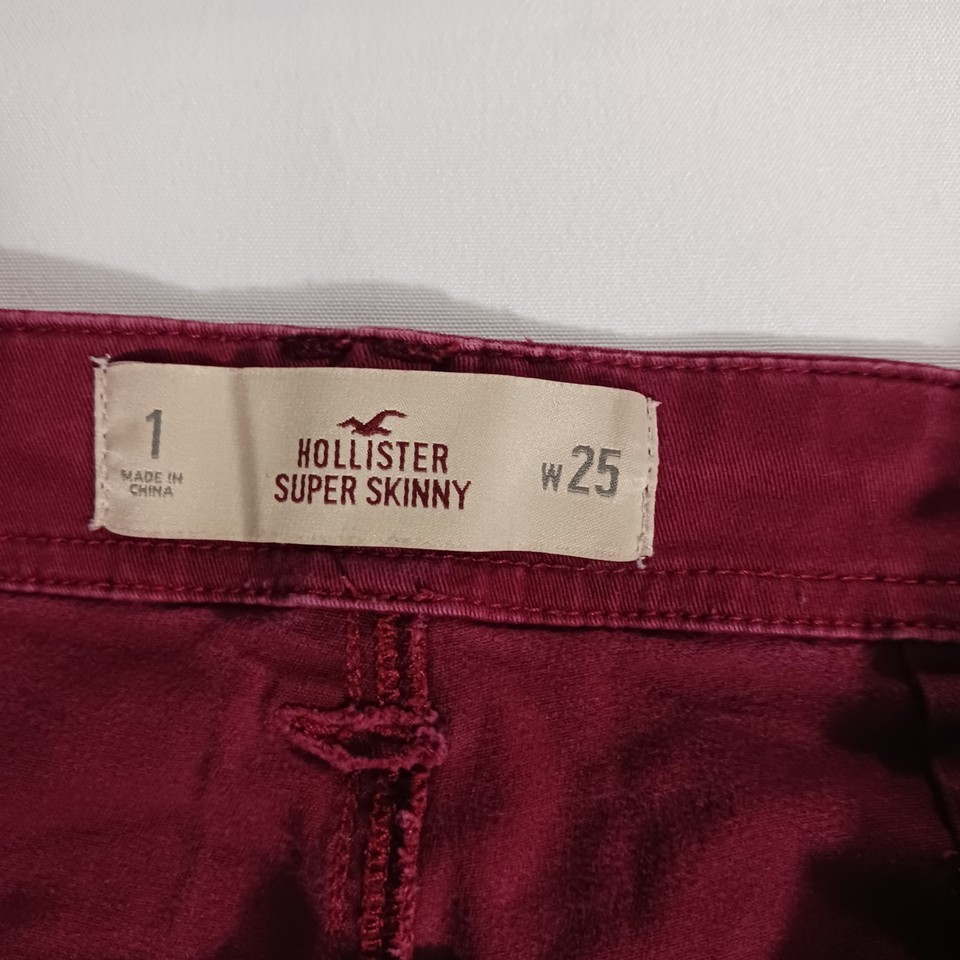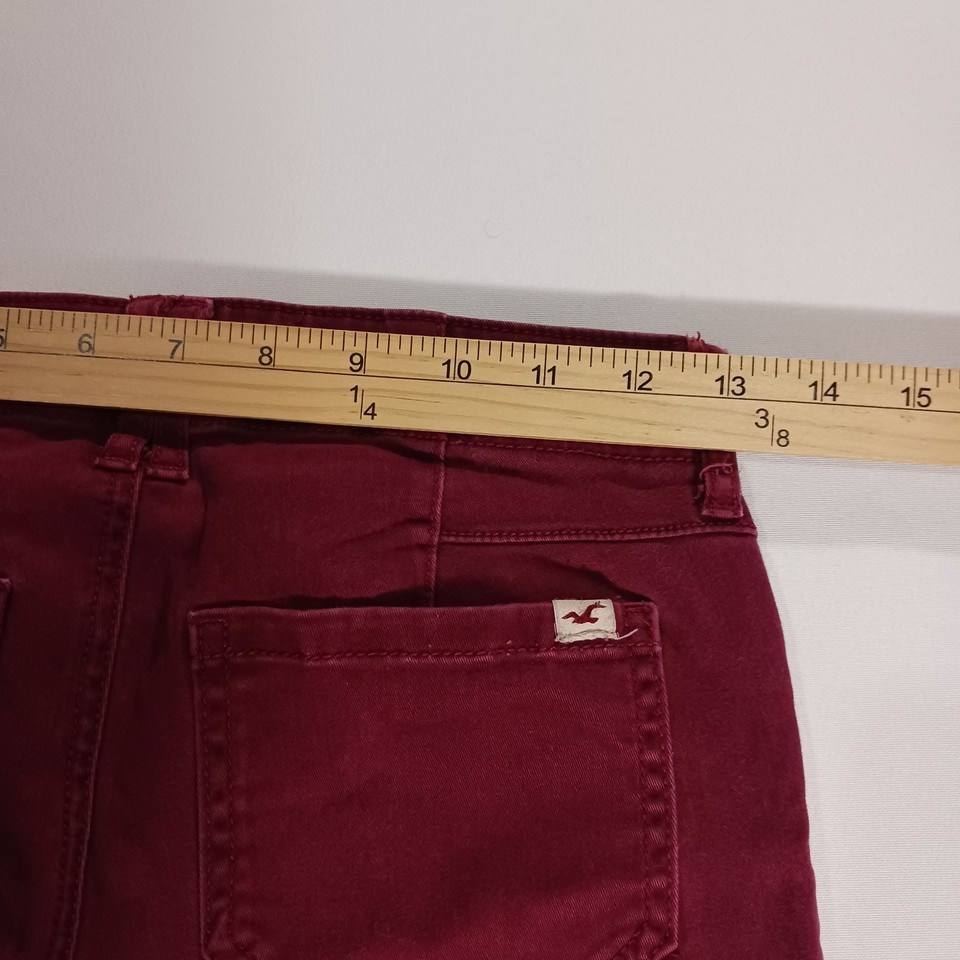 The Hollister RN#75654 Women?s Red Cotton Blend Super Skinny Jeans in size 1 (2528.5) are a stylish and trendy option for women looking for a flattering and comfortable fit. Made with a cotton blend fabric wash in a dark red color, these jeans feature a low rise and super skinny style that is perfect for juniors. The denim material ensures durability and the inclusion of spandex provides added stretch for ease of movement. With the Hollister brand known for quality and style, these jeans are sure to be a staple in any woman's wardrobe. Please check pictures for accurate measurements. All used clothing is pre-washed and stored in a smoke-free home. Please contact us for any issues or concerns. Thank you. 4885