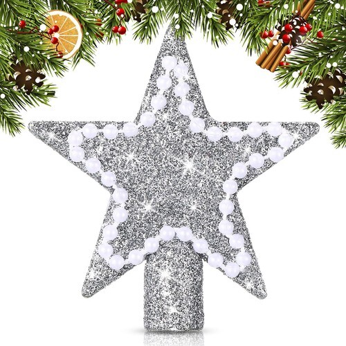 Hollowfly Mini Star Christmas Tree Topper Silver Pearl Decoration 2 Inch
