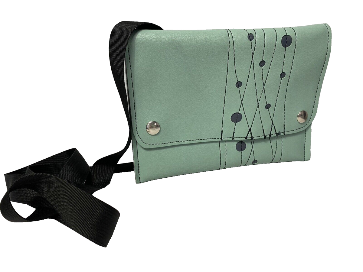 Holly Aiken Foldover Crossbody Purse Size: 8.75" W x 6.25" H x 0.5" Depth x 26" Strap Drop (adjustable) Mint Green Color Black Detachable and Adjustable Crossbody Strap Foldover with Snap Closure Interior Divider Previously owned. Very faint stain on front side of purse - please see all photos. Otherwise in excellent condition. Check out my other items! I am happy to combine shipping and only charge actual shipping charges - NO HANDLING FEES! My goal is always 100% complete customer satisfaction. If you feel your item has arrived "not as described", please contact me to arrange for return/refund before leaving feedback I am a trading assistant. I can sell your items for you! |KRM-IH|