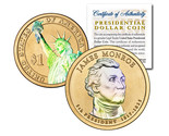 Here is your opportunity to own or to gift the hologram JAMES MONROE 2008 Presidential $1 U.S. Coin. To highlight the original design, the Merrick Mint has beautifully hologram enhanced both the obverse side and reverse side of the coin using a unique authentic process. The result is an everlasting hologram coin collectible of ultra-high quality that is #1 in the industry. Each coin comes in a premium coin capsule with a full color Certificate of Authenticity to guarantee that your coins are authentic and recognized by every monetary authority around the world, assuring its Collector Edition status. The James Monroe 2008 Presidential $1 U.S. Coin features a Statue of Liberty design on the reverse and an James Monroe portrait design on the obverse.