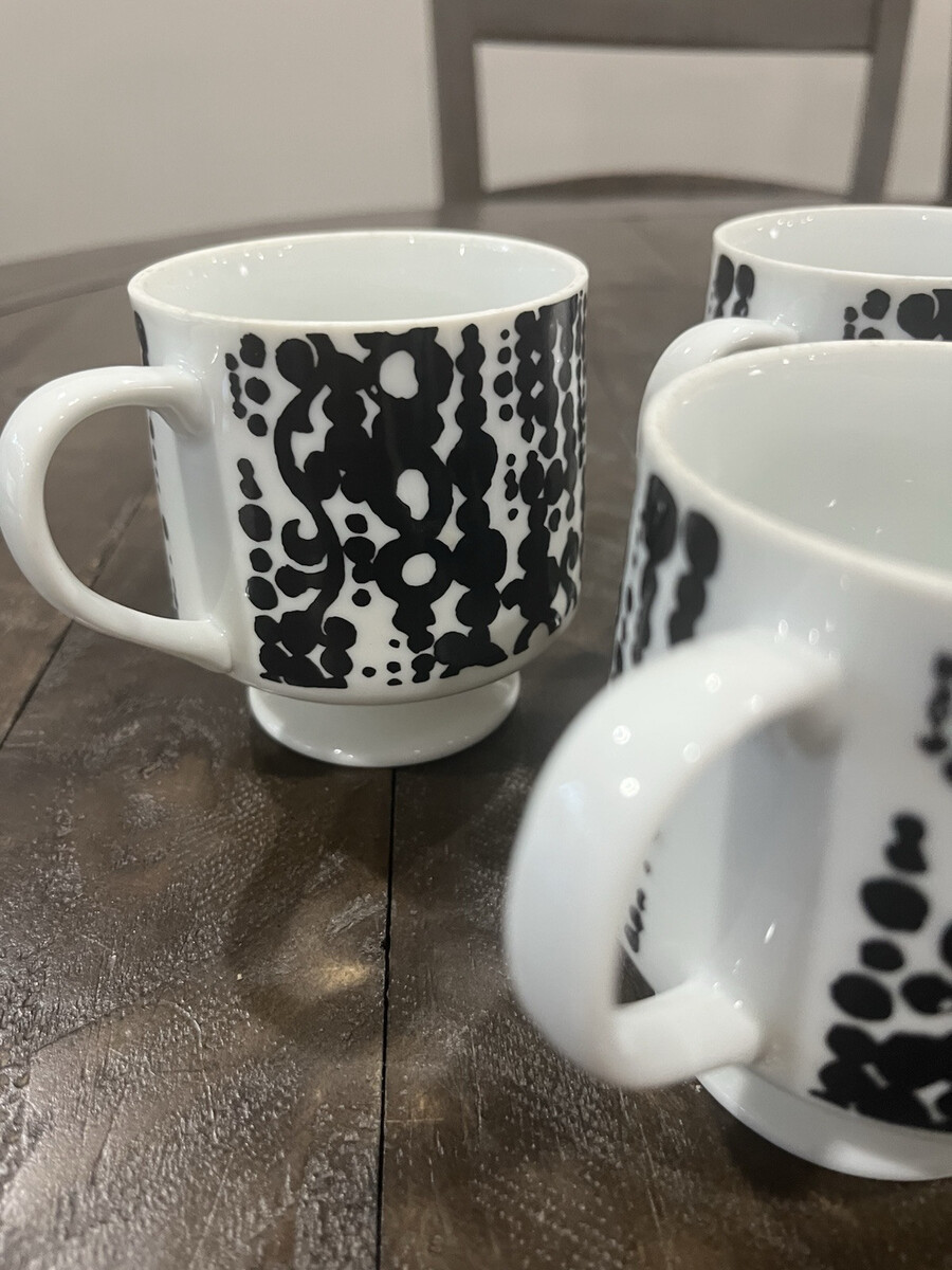 Primary image for Holt Howard Pedestal Vtg Coffee 5 Mugs Black White Mod Retro 7848 Abstract 1966