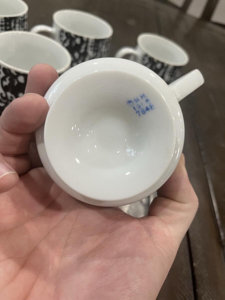 Holt Howard Pedestal Vtg Coffee 5 Mugs Black White Mod Retro 7848 Abstract 1966