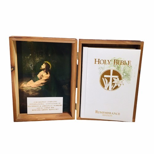 - Holy Bible Remembrance Edition In Wooden Box Local Lodge 664 KY Union Made USA