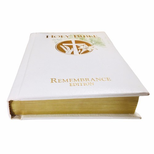 This product is a Holy Bible Remembrance Edition that comes in a wooden box. The Bible is written in English and is an original copy. It is bound in leather and has illustrations. The Bible's topic is Christianity and Bibles, and its subject is Religion Spirituality. It was Union made in the USA. The white cover of the Bible has some greenish residue from the picture on the inside of the wooden box. It has been stored away for many many years and that is probably how that happened. Nothing major, not affecting anything on the inside of the brand new inner bible.