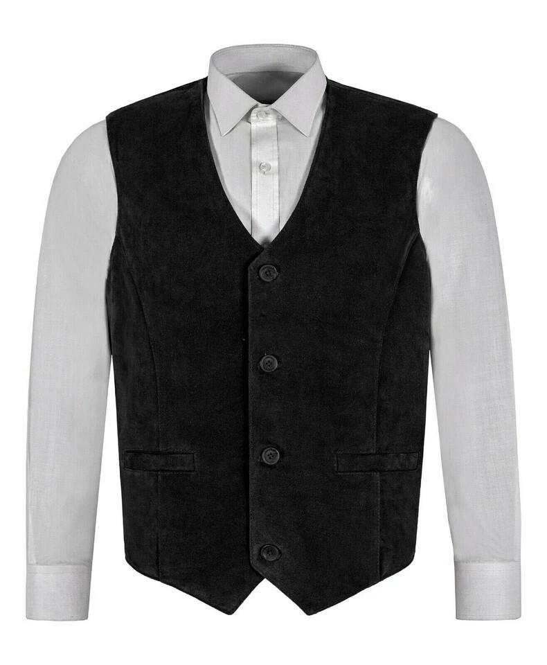 Hombres Chaleco Abrigo Gamuza Suave Hecho a Mano Cuero Genuino Piel de Cordero Moda Fiesta Ropa Fi\MN