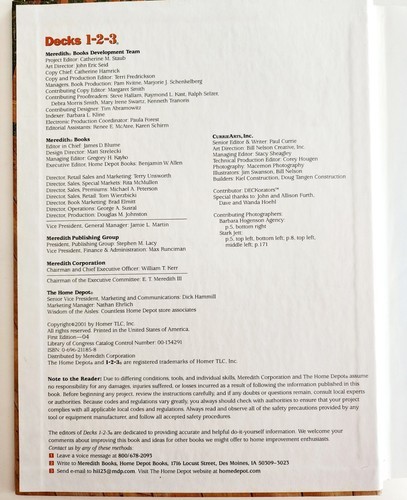 Home Depot Decks 1 2 3 DIY First Edition 2001 Carpentry Home Repair BKBX13