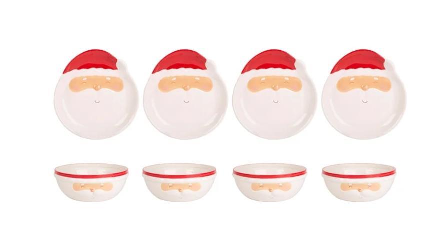 - Home Essentials Serving Bowl Plate Set Santa Multicolor 8-Piece Christmas