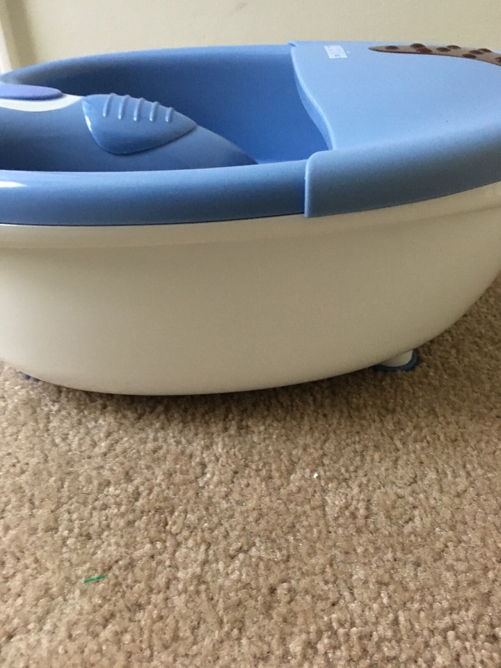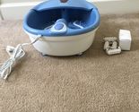 HOMEDICS BODY BASICS LUXURY FOOT Massager BUBBLER - BUBBLEBLISS PLUS WITH HEAT in great overall condition. There are a couple of very small dents and scratches on the foot bubbler in places. This was used a few times and the wall plug in is still wrapped up. The 4 little whit rollers is in a small white box. The foot bubbler will not come with it's original box. It will be shipped in brown box.
