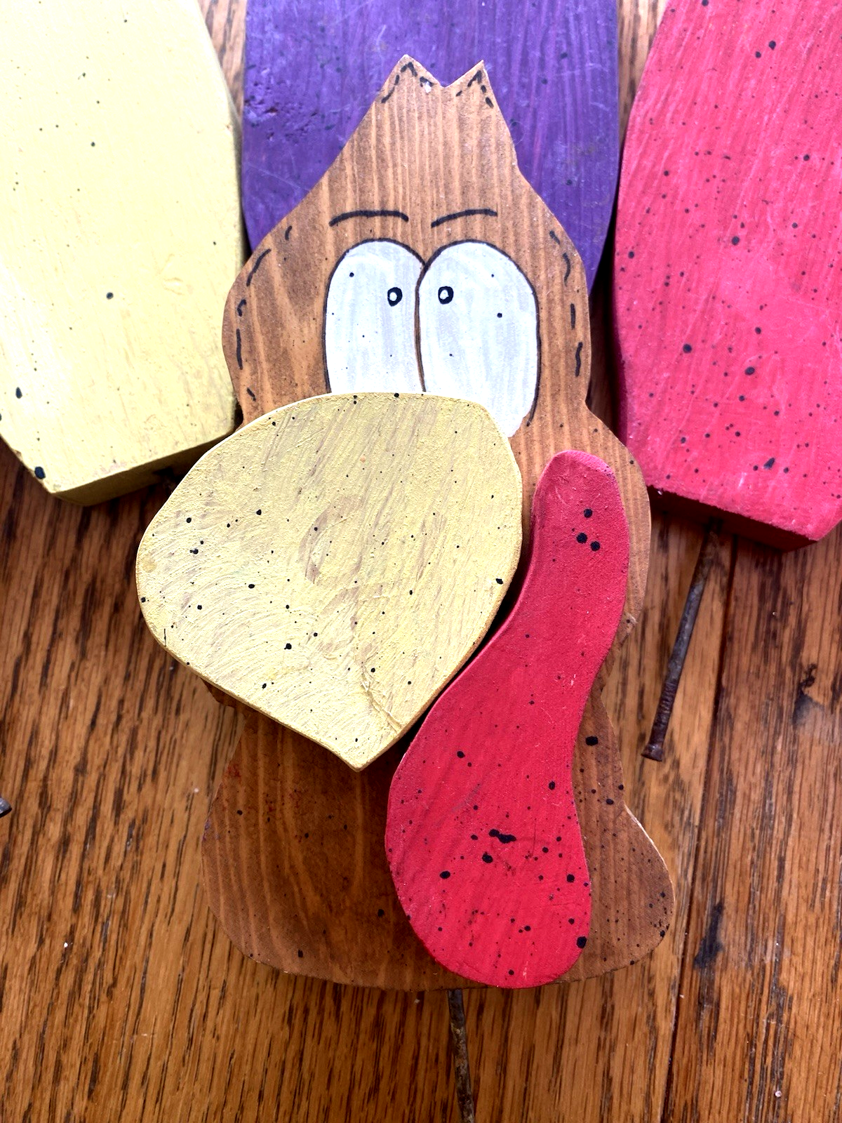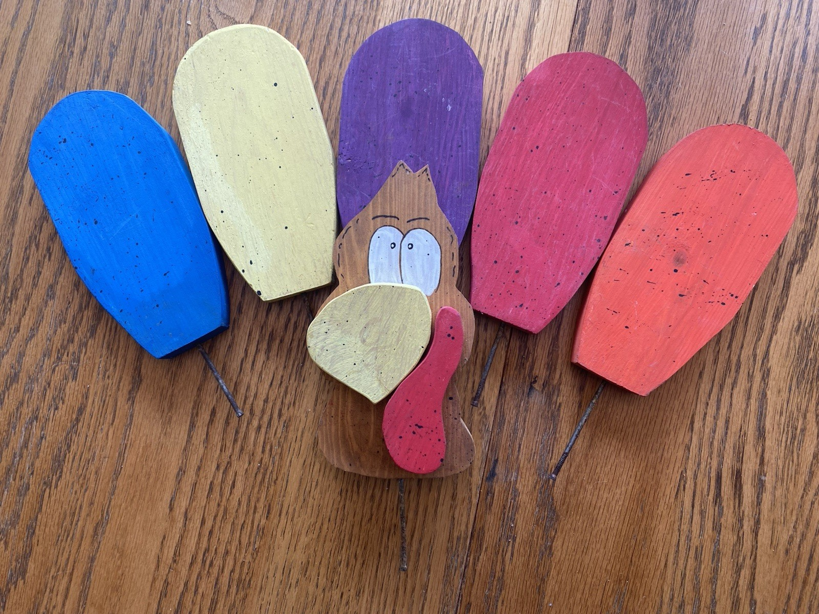 Homemade Wooden Turkey and Feathers Planter Yard Pick Thanksgiving Holiday Decor