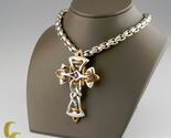 Hommes Tigrani Argent Sterling .925 Et Bronze Rubis Pierre Croix 24 Inches Long
