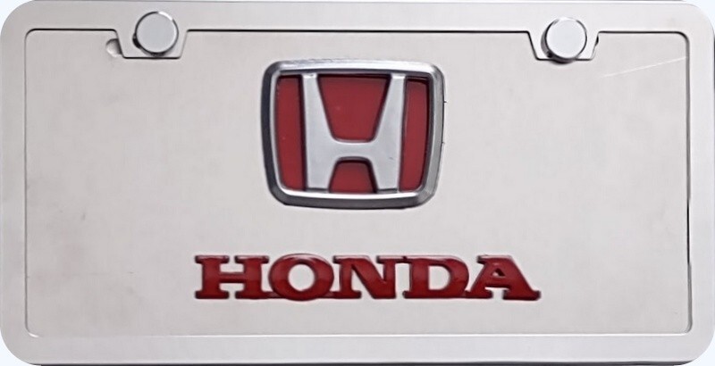 - Honda 3D Red Logo & Script License Plate + Free Key Chain