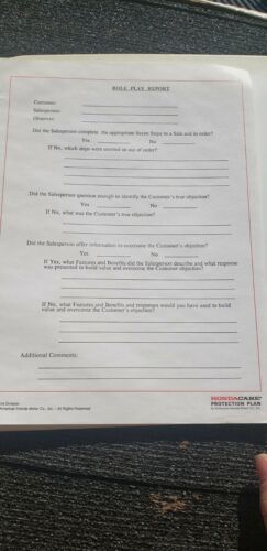 Honda Hondacare protection plan selling skills workshop binder dealer vintage 93