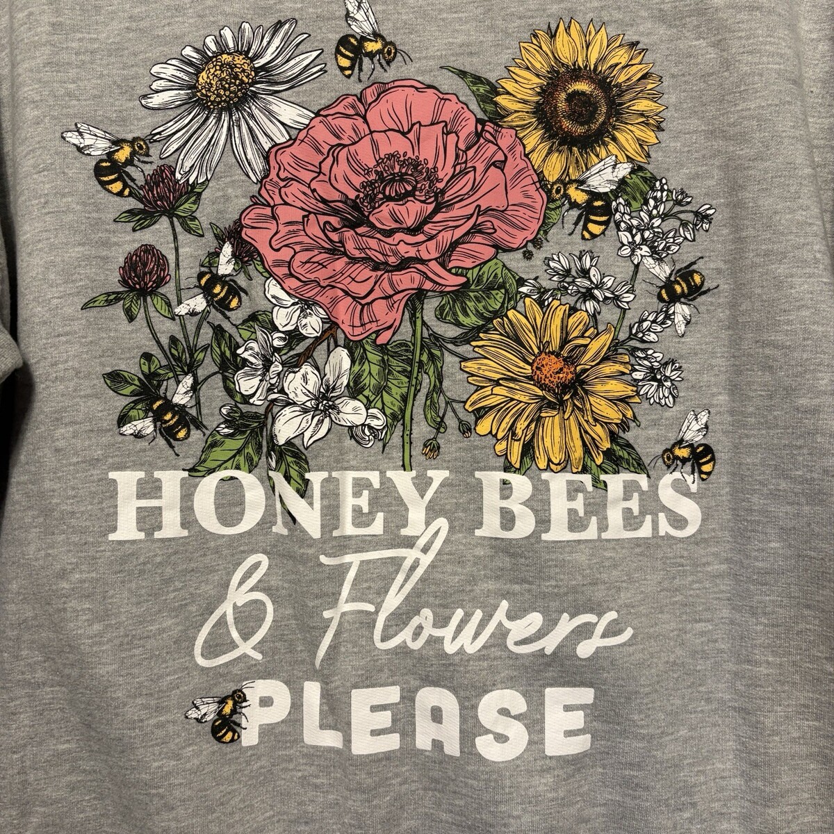 Honey Bees And Flowers Please Sweater Oversized Gray Size XXL Floral Streetwear