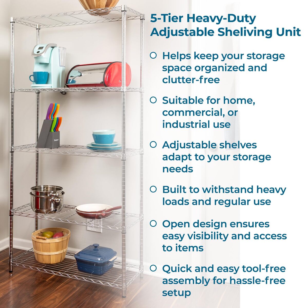 - Honey-Can-Do 5-Tier Heavy Duty Adjustable Shelves, Metal Storage Rack with 200-l