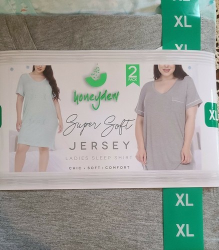 This sale is for two (2) Honeydew Ladies Sleep Shirts Women's Size Extra Large (XL) 1- Heather Gray ~ 1- Moonfish Leopard Stretch ~ jersey fabric Breathable Soft hand feel 95% Rayon ~ 5% Spandex Machine wash ~ Tumble dry These sleepshirts are new in original packaging Please view photos for a good description of this item Thank you!