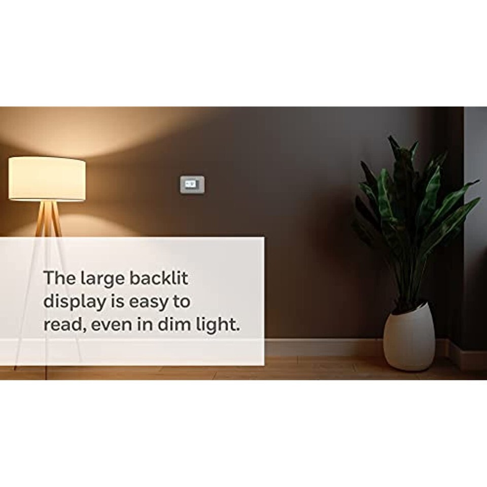 Large backlit display shows current room temperature and set point temperature simultaneously