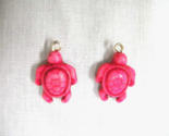 - HONU SEA TURTLE PINK COLOR HOWLITE DANGLING 2 SIDED CHARMS DROP PAIR OF EARRINGS