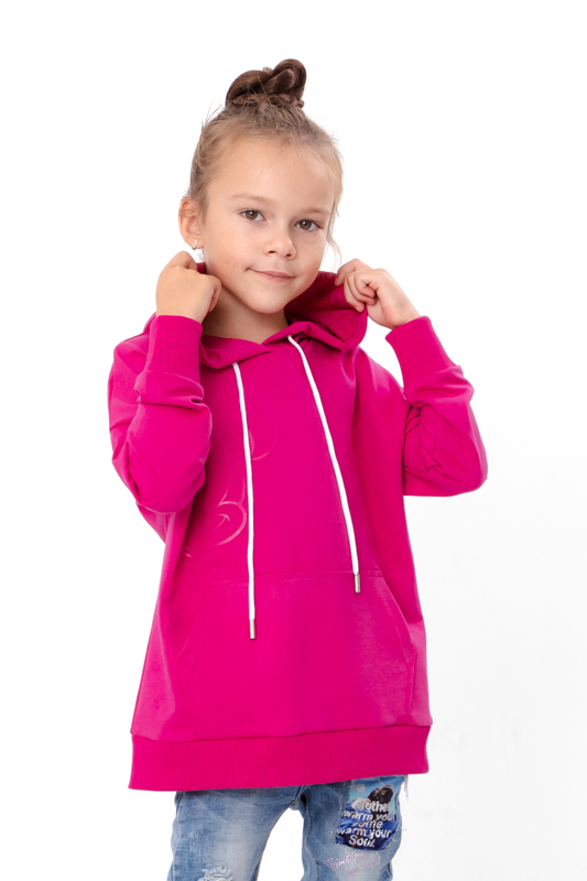 Girls? hoodie made of solid double-thread fabric with a bright print ? the perfect combination of style, comfort, and practicality. The fabric (80% cotton, 20% polyester) is soft, dense, and retains its shape after multiple washes. The hood protects against wind and light rain, and the comfortable cut provides freedom of movement for active teens. The practical kangaroo pocket allows warming hands or storing small items. The solid base and bright print easily match with jeans, leggings, skirts, or shorts. Perfect for walks, school, and meeting friends.