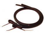 Made with English Bridle Leather. All edges are painted black. Oil stained for rich mahogany color. Hand-rubbed for top quality feel. Great trail riders choice. Measures 5/8" x 7'