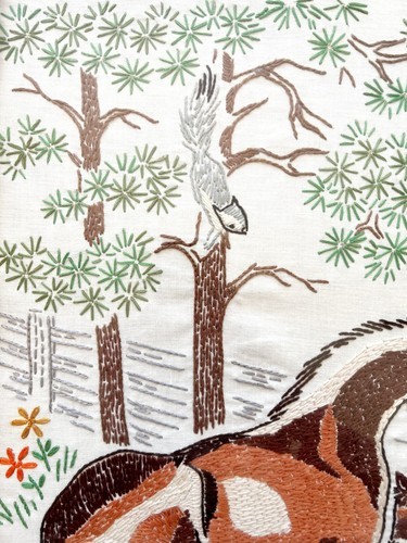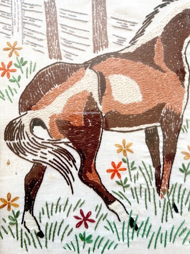 Original yarn thread art. Some wear, fading, light staining. Fabric can be cleaned but I did not want to break the paper backing to get at the item. Expect some dust, dirt and dead bugs from years of storage. Once pattie on back is peeled off, fabric can be removed, vacuumed, cleaned, etc... this is the buyers responsibility Glass and frame has had a general cleaning by seller Frame has wear, scratches. Glass looks clean Approx 21.5 x 17.5 x .75" Ready for wall Age is approximate... artist and date may be under paper...unknown **All items pictured are fully usable and/or functional unless otherwise noted** Inspect pics closely and ask any questions before buying or offering. Tons more toys, collectibles, paper, antique, vintage ephemera, maps, engravings, prints, vinyl, vhs, media, books, bags, handmade and more! Will combine shipping!