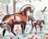 Primary image for Horses On Farm Thread Yarn Art Framed 1960-70s Antique Original Artwork SS