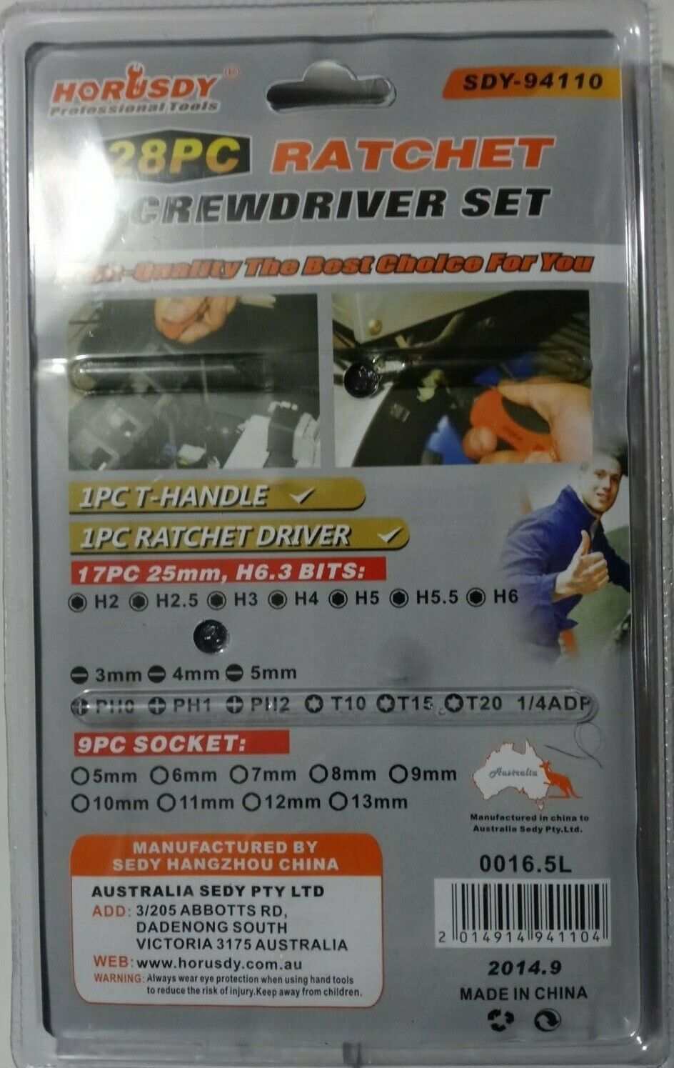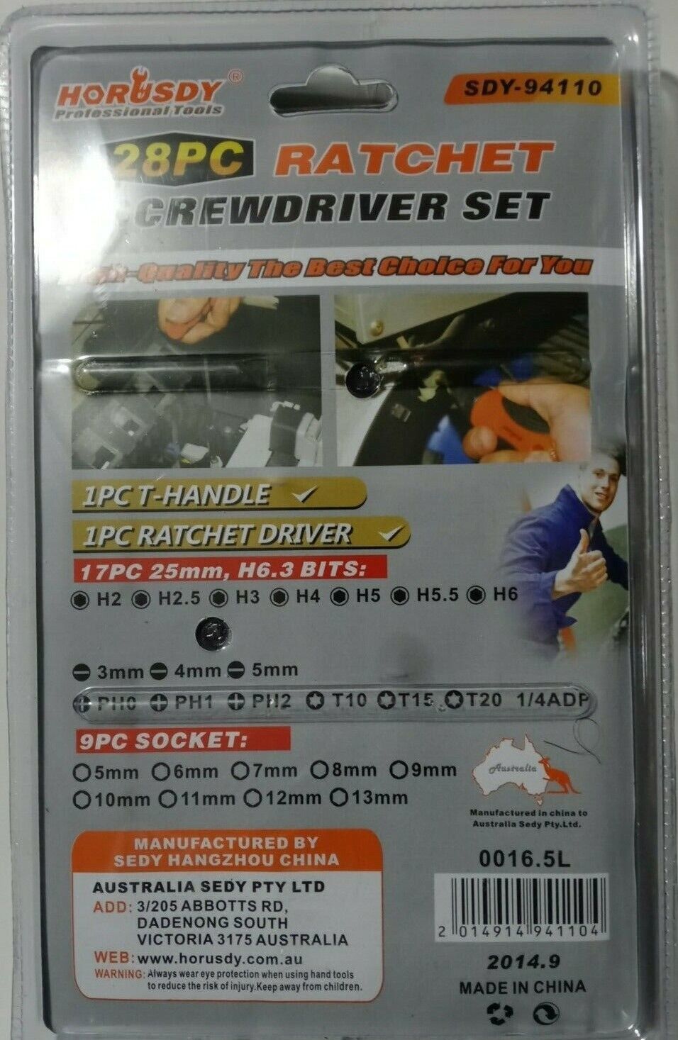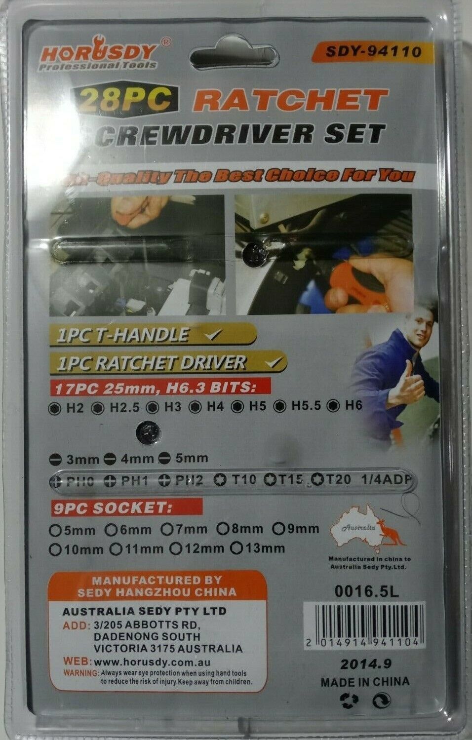 - HORUSDY PROFESSIONAL TOOLS 1 Ratchet & 1 Screwdriver 17Pc Bits 9Pc Socket 28 Set
