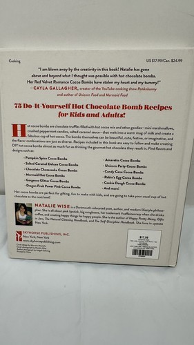 The product is a hardcover book titled "Hot Cocoa Bombs: Delicious, Fun, and Creative Hot Chocolate Treats" by Natalie Wise. Published by Skyhorse Publishing Company, it features 200 pages filled with recipes and illustrations for making hot cocoa bombs, perfect for holiday indulgence. The book includes creative ideas for hot chocolate treats, emphasizing a fun and delicious approach to making beverages at home. The book is in English and is illustrated, making it a valuable resource for those interested in cooking and house home topics related to seasonal and holiday-themed beverages.