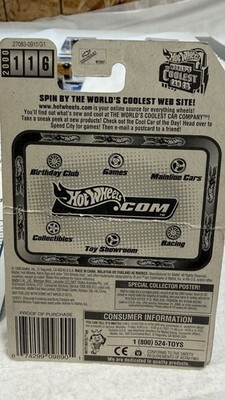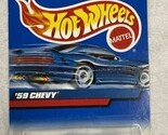 There is a crease in the cardboard. The Hot Wheels '59 Chevy 2000 Collector #116 in Silver is a 1:64 scale diecast model of a Chevrolet Impala lowrider from 1959. This collectible car comes in an unopened box and is part of the Hot Wheels Blue Card series. Made in Malaysia, this model is a part of the Hot Wheels brand's line of toy vehicles, perfect for car enthusiasts and collectors alike.
