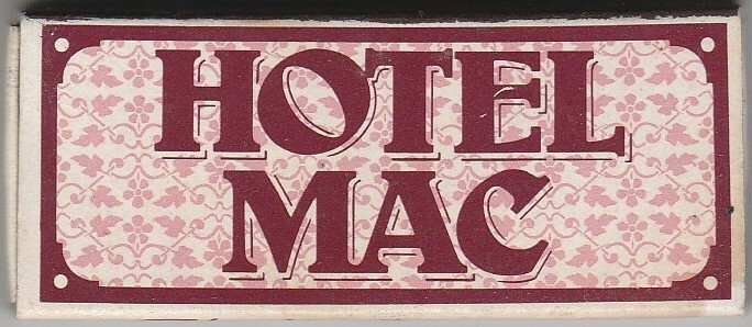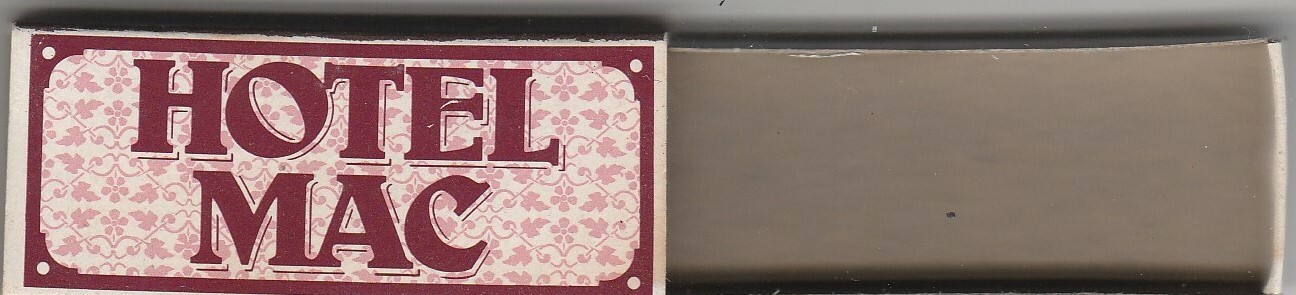 Hotel Mac ~ Strike on Match Box with local advertisement, no sticks ~ Vintage