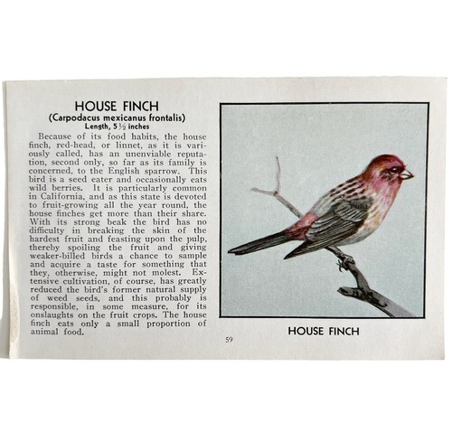 House Finch Bird Print 1931 Blue Book Birds Of America Antique Art PCBG13B