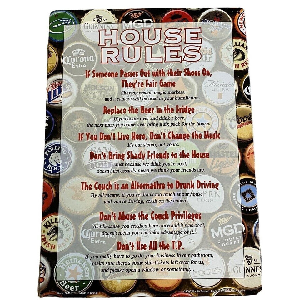 House Rules Beer Bottle Cap Metal Sign 8x10