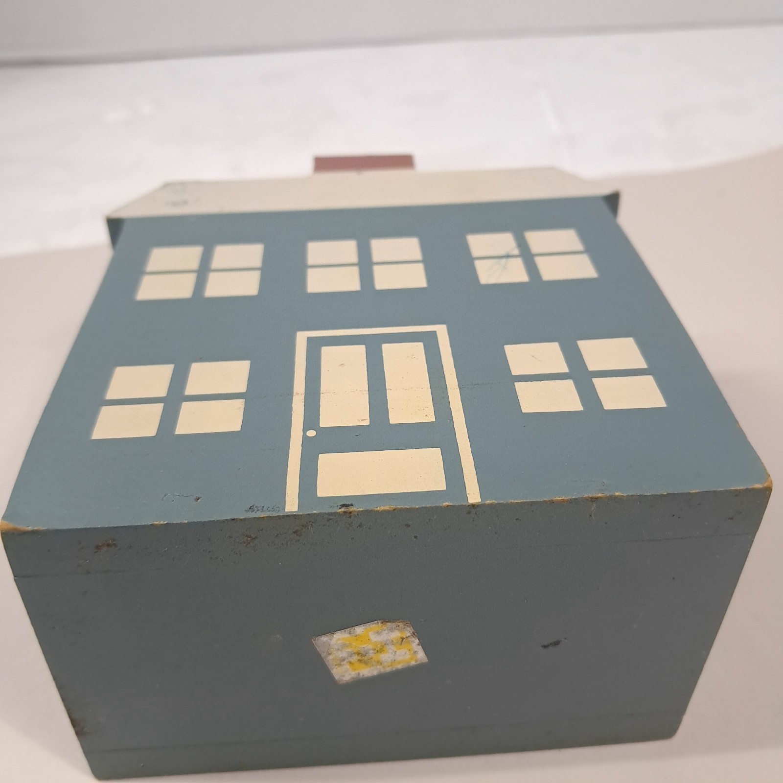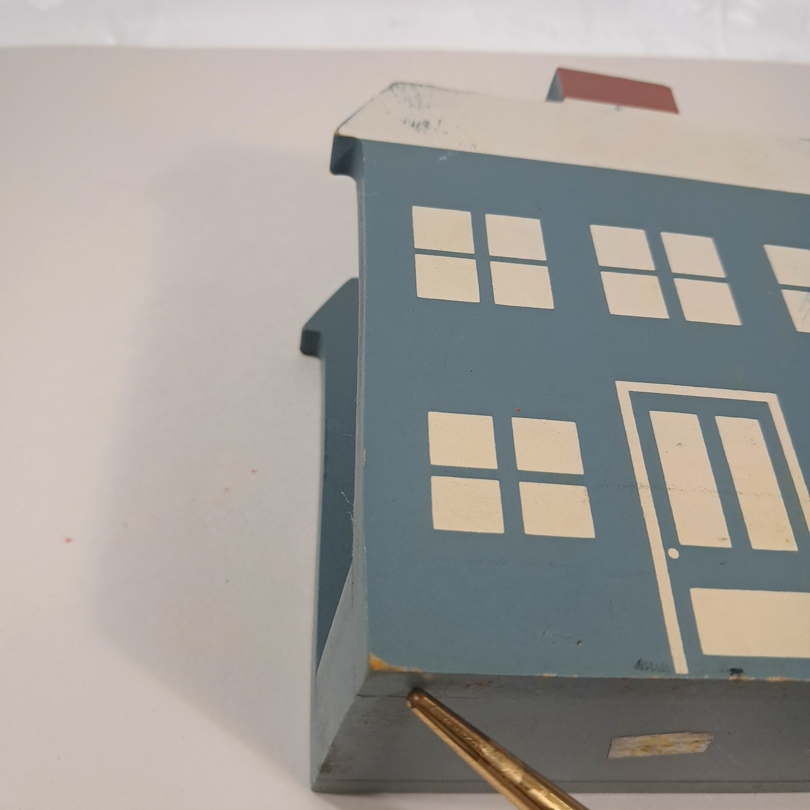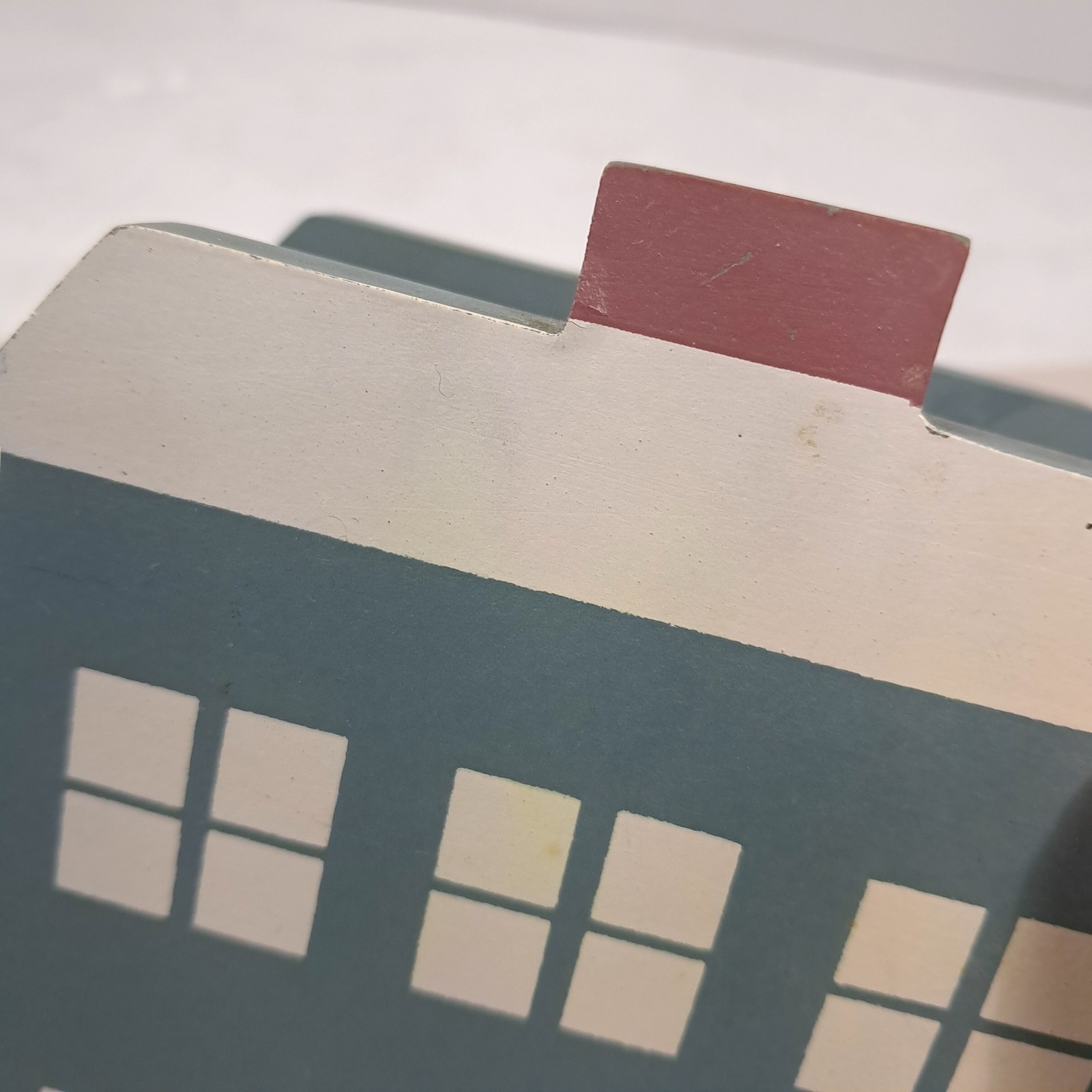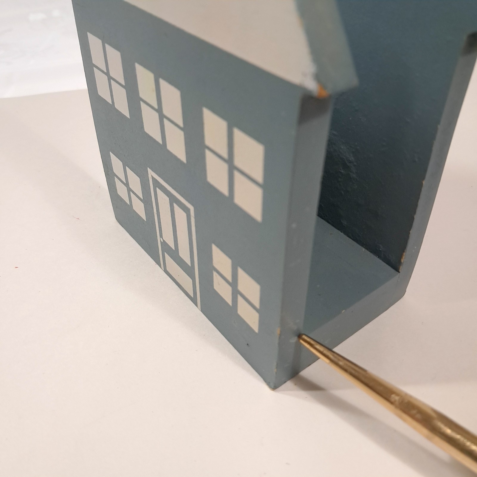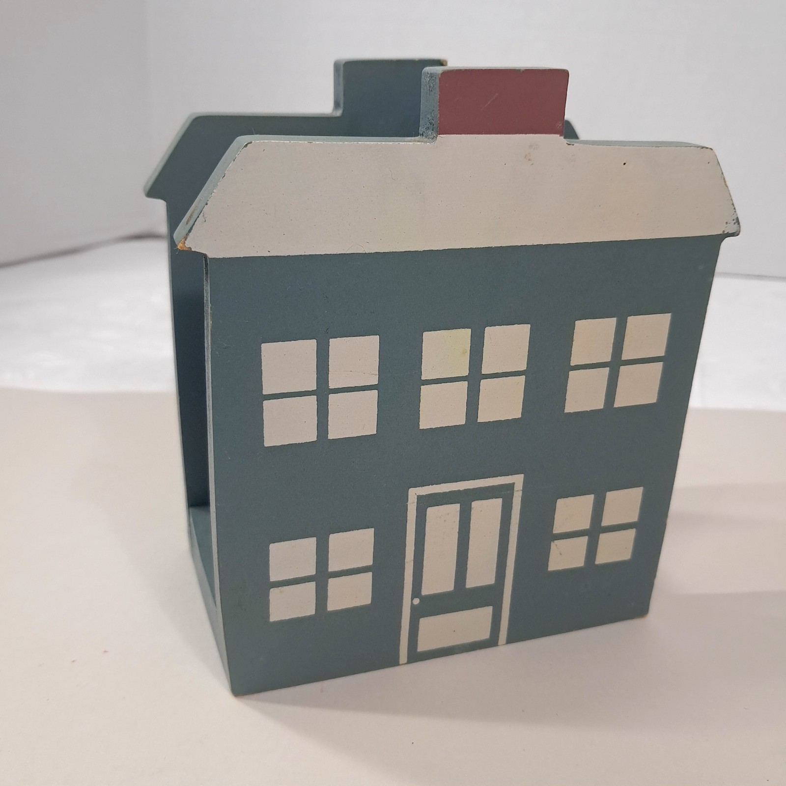 House napkin holder wood blue white cottage home wooden storage organizer cabin Paint wear/marks/wear as shown. See pics for measurements and details.