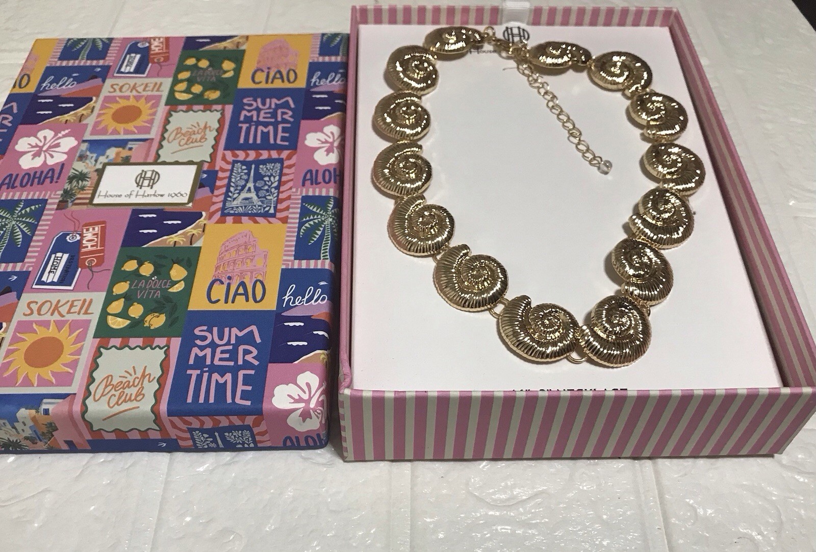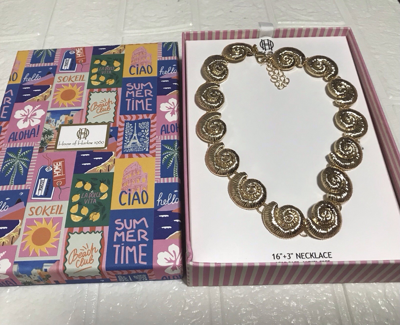 House of Harlow gold spiral seashell necklace 16+ 3 inch extender