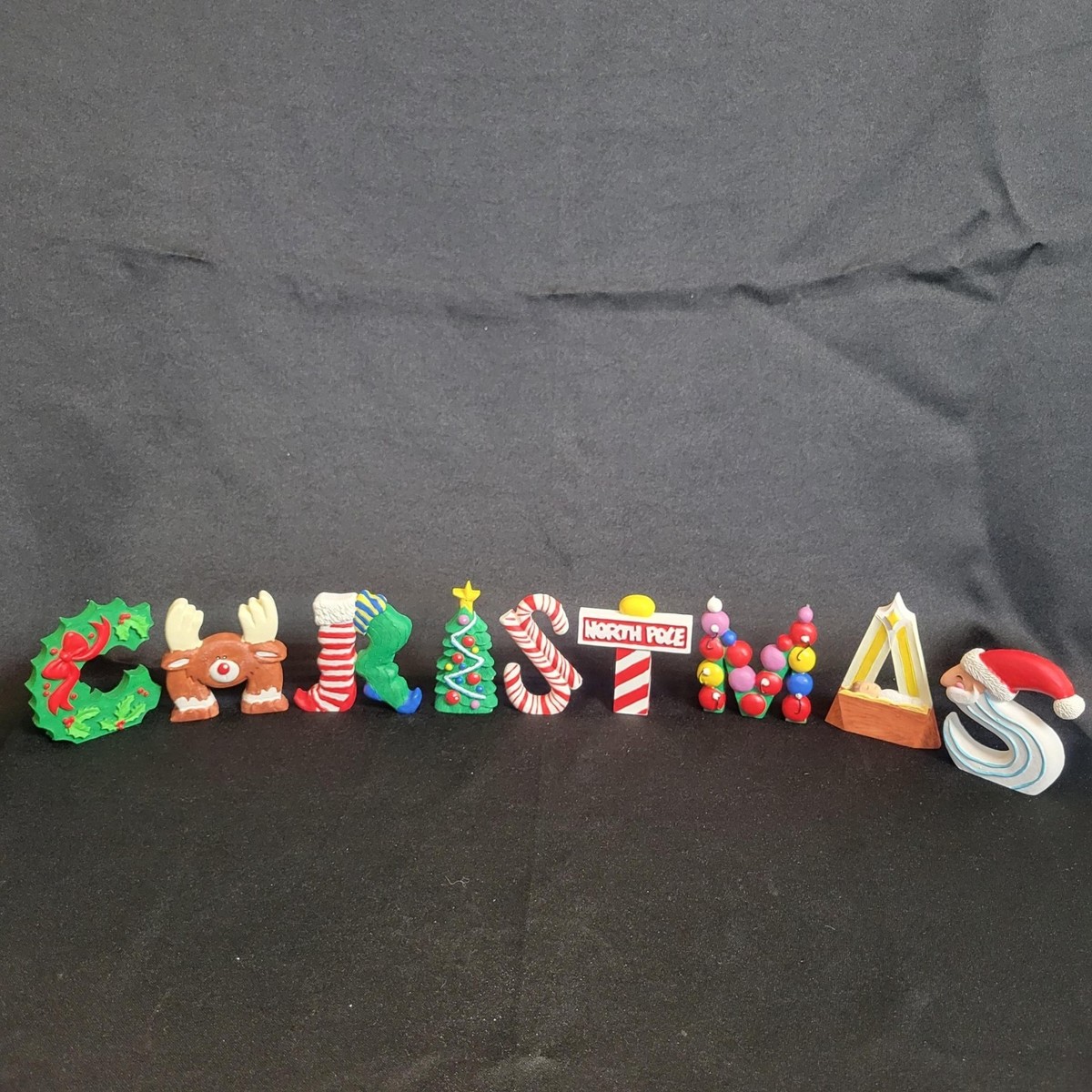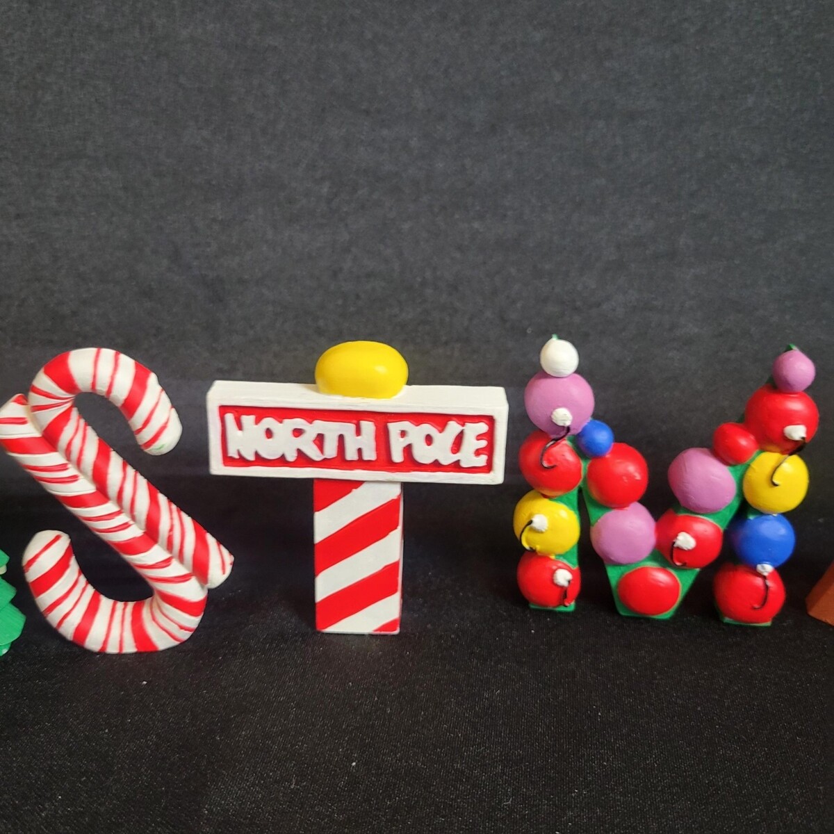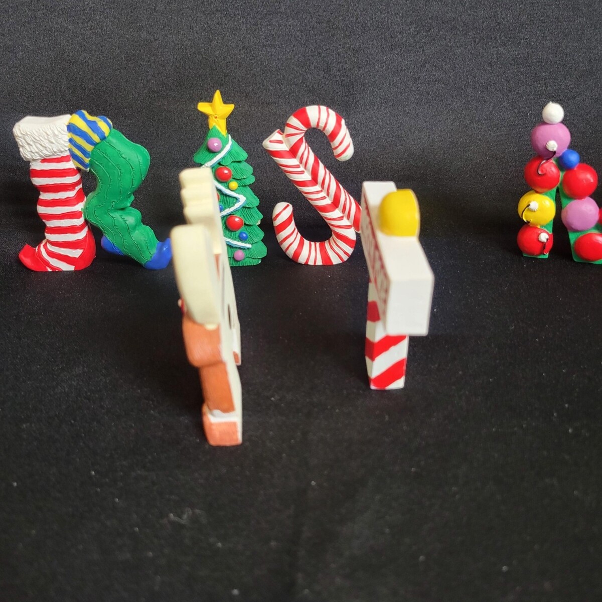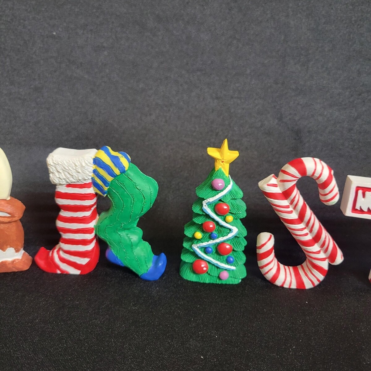 - House of Lloyd Christmas Letter Spell Out Wooden Blocks Anamorphic 1996 Resin