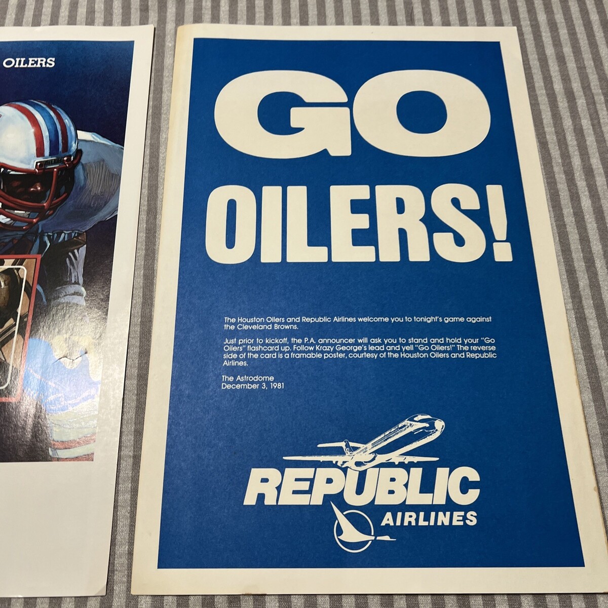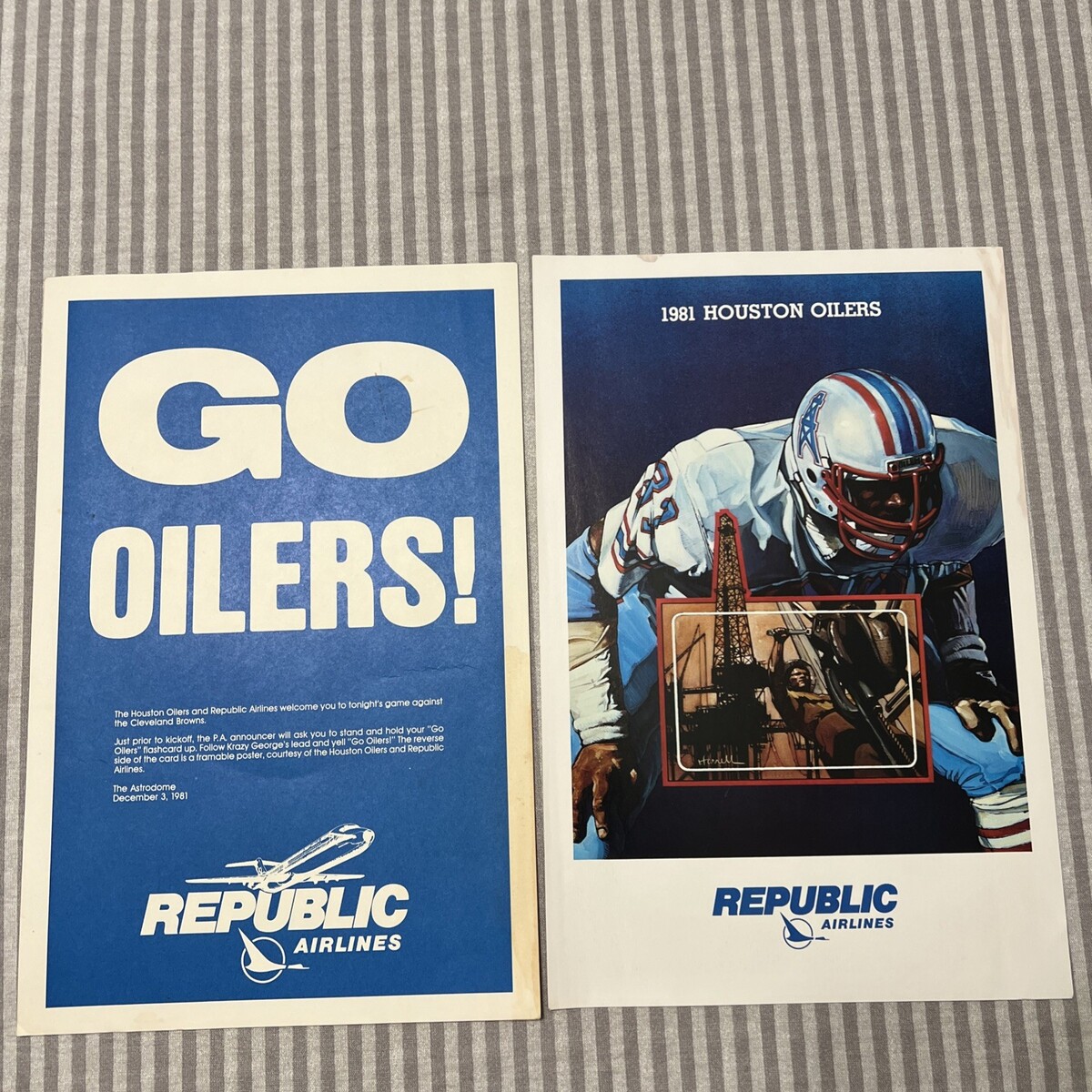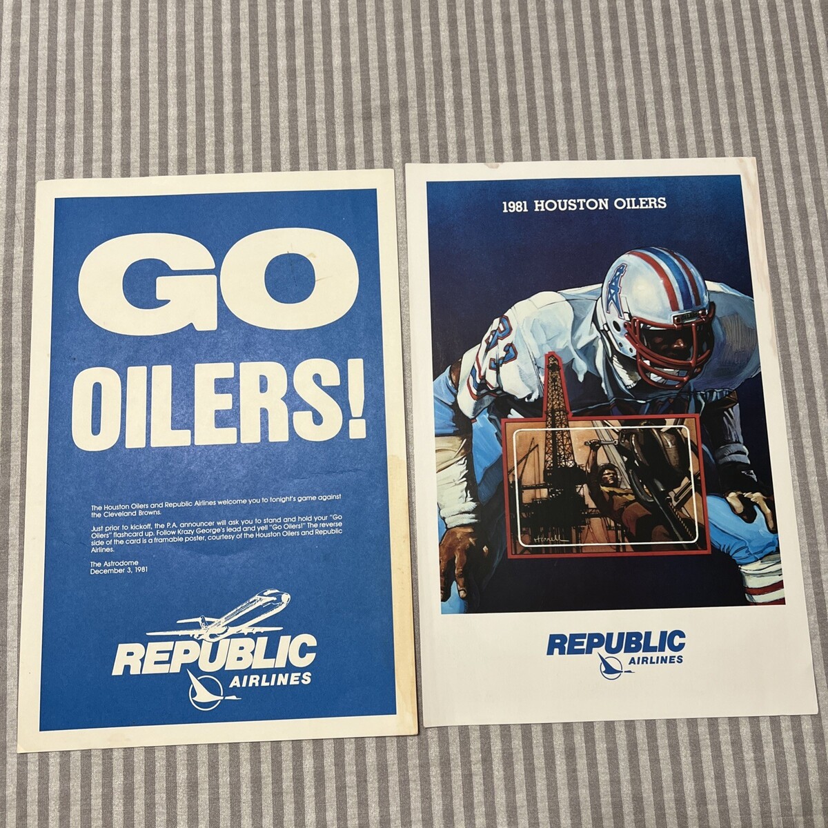 - Houston Oilers Poster 1981 Football Republic Airlines 11.5x17.5" Astrodome