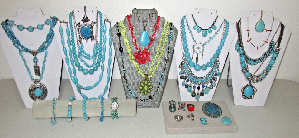 HUGE Vintage - Now TURQUOISE & CORAL Jewelry Lot 3+LBS Southwestern Wearable 33p