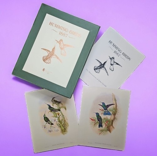 This is a portfolio of 58 framable prints featuring Humming-Birds presented in a beautiful green hinged box and included a Brochure that has a list of Plates . The medium-sized prints, measuring 1.0000 in x 10.6000 in x 8.4000 in, showcases the beauty of birds in a realistic style, making it a perfect addition to any art theme or culture.