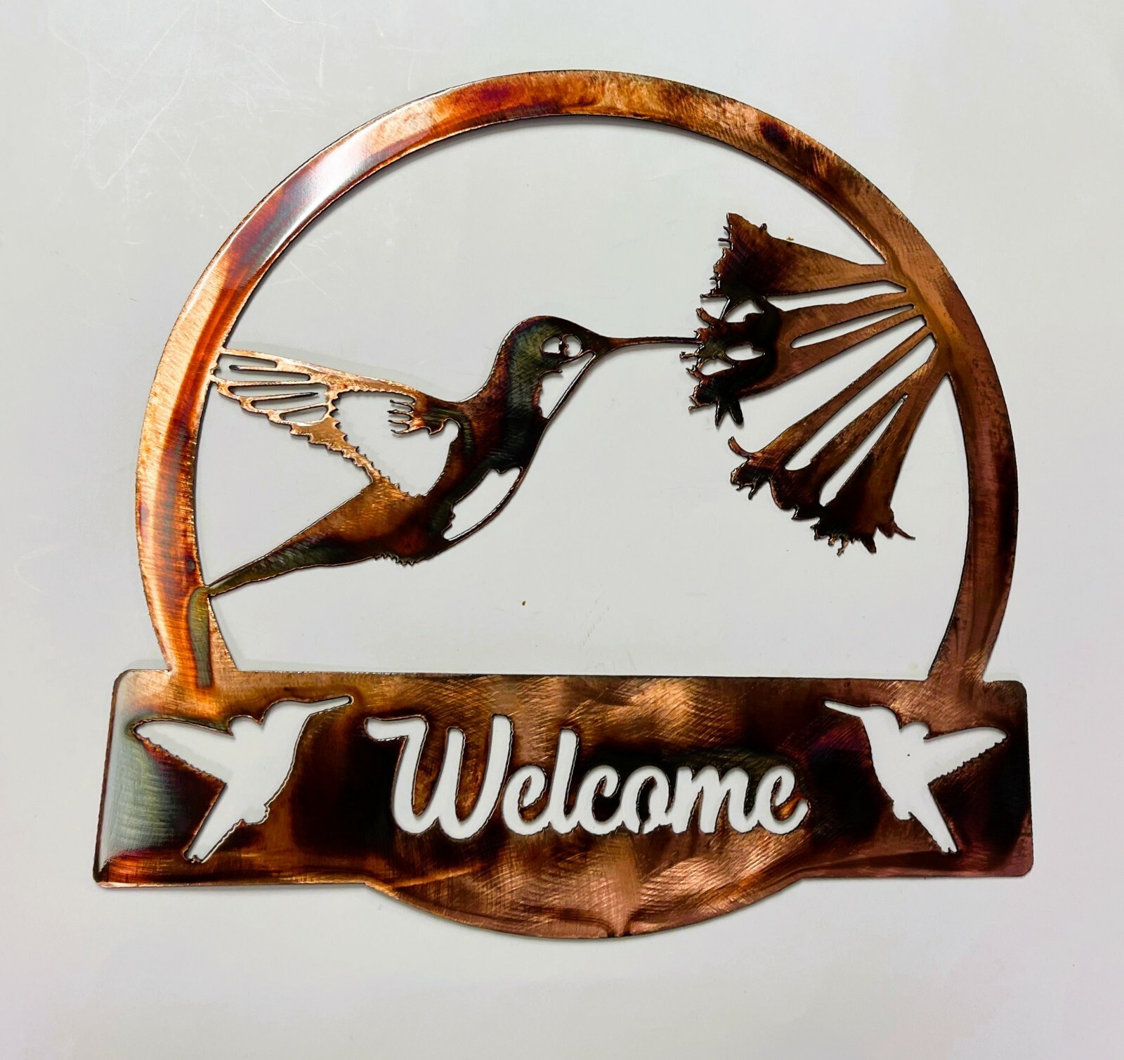 - Hummingbird Welcome Sign Metal Wall Art Decor 12 3/4" wide x 12 3/4" tall