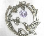 WILD HUMMINGBIRD FLUTTERING AROUND 3 FLOWERS WITH LEAVES GREAT DETAILS (FRONT VIEW ONLY - see photos) 1 LILAC LAVENDER PURPLE SWAROVSKI CRYSTAL dangling in the interior